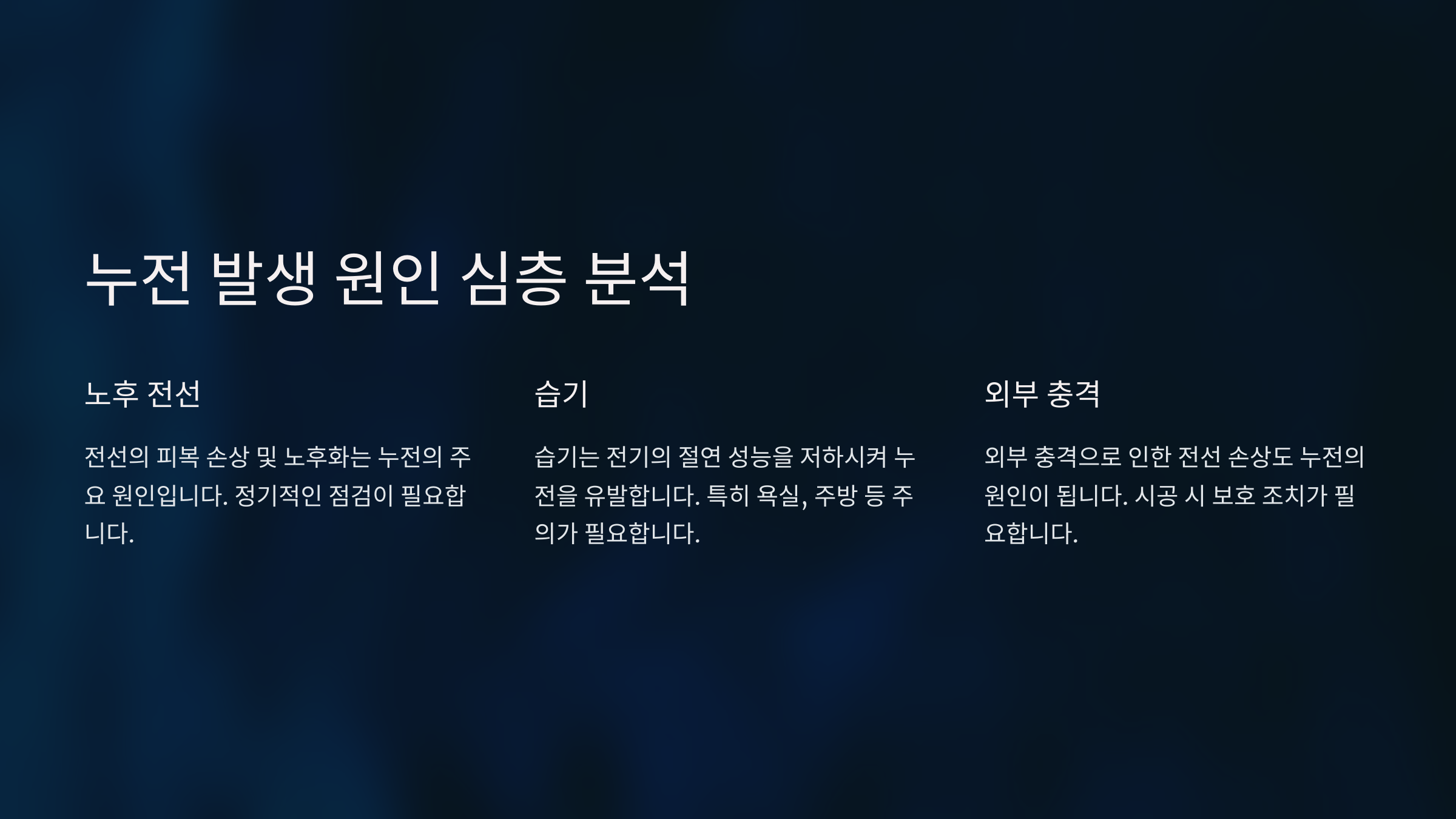 전기누전은 일상에서 쉽게 지나칠 수 있지만, 한순간의 방심이 큰 사고로 이어질 수 있어요. 사전에 점검하고 대비하는 것이 가장 중요한 예방법이에요! ⚠️