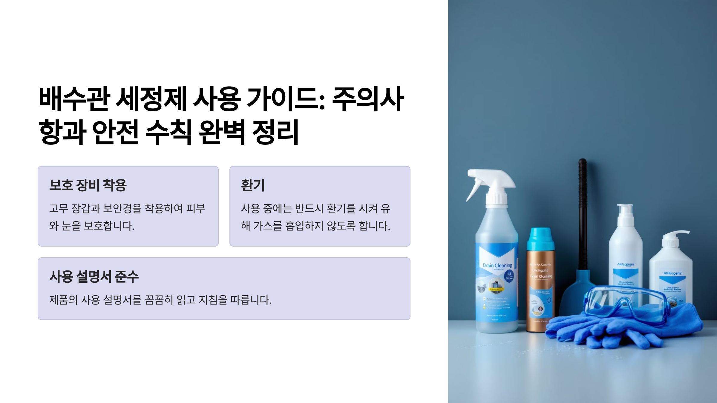 ✅ 준비물 - 배수관 세정제 (액체형 또는 젤 타입) - 고무장갑과 보호 안경 (화학물질 보호용) - 뜨거운 물