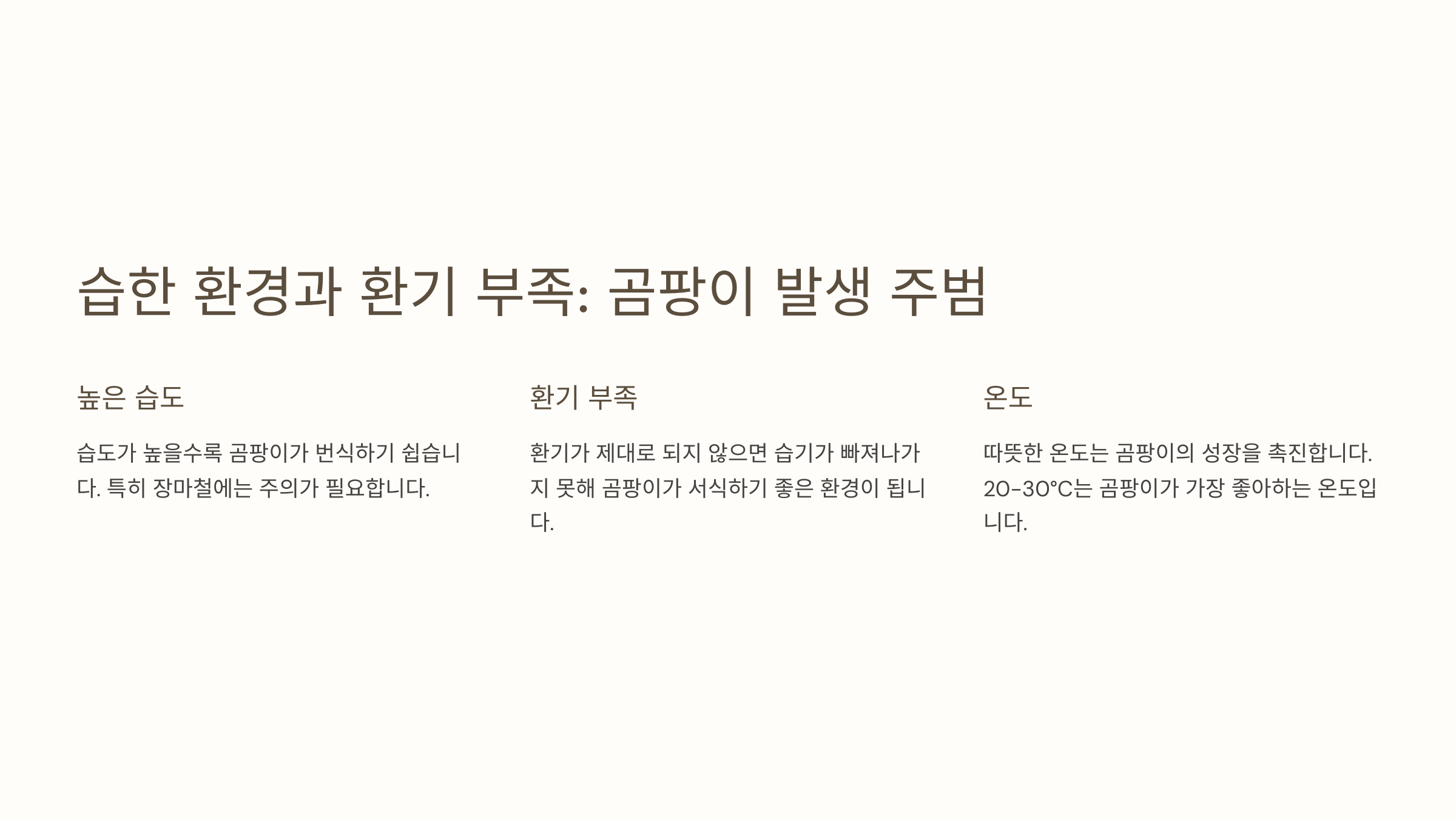 | 습도 요인 | 곰팡이 위험도 | 예방 방법 |