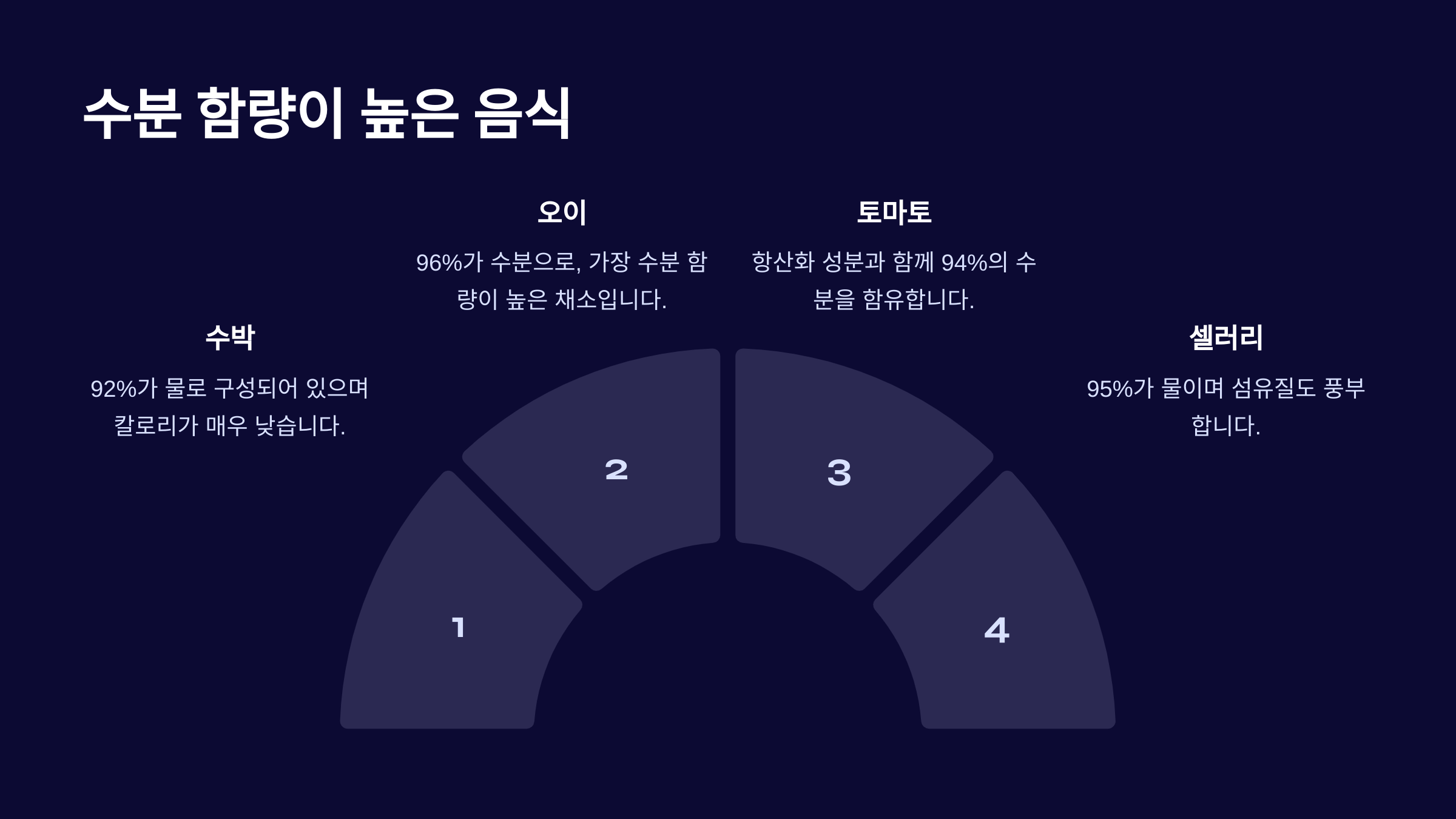 수분이 많은 음식들을 자주 섭취하면 자연스럽게 수분 보충이 되고, 식욕을 줄이는 데도 도움이 돼요. 여름철에는 수박이나 오이를 간식으로 먹으면 좋고, 식사 중에 셀러리나 토마토를 추가하면 포만감이 더욱 오래 지속돼요. 🍅