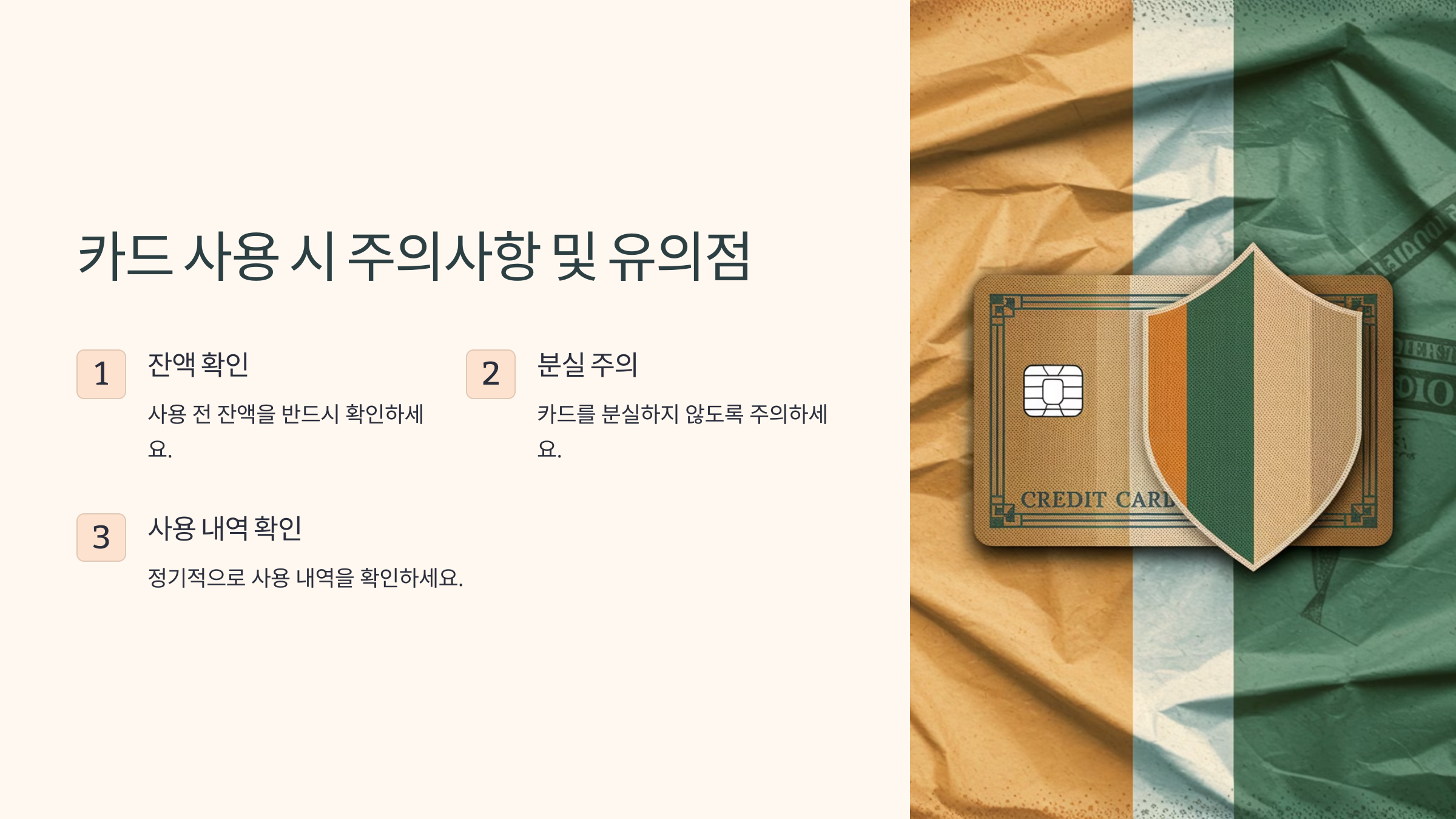 - 카드사별 추가 혜택 비교: 카드사마다 제공하는 추가 혜택이 다르니 본인에게 유리한 혜택을 체크하세요.
