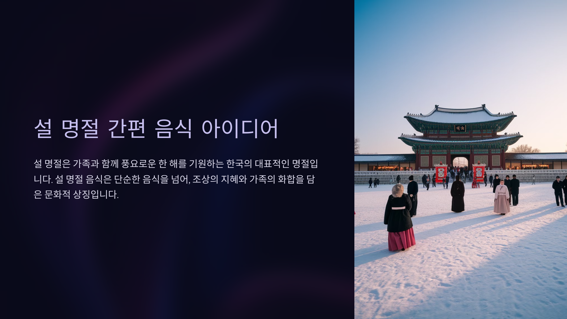 요즘은 전통적인 명절 음식 외에도 간단하면서도 독창적인 메뉴를 준비하는 가족들이 늘어나고 있어요. 전통과 현대를 조화롭게 섞어 특별한 설 명절을 만들어보세요!
