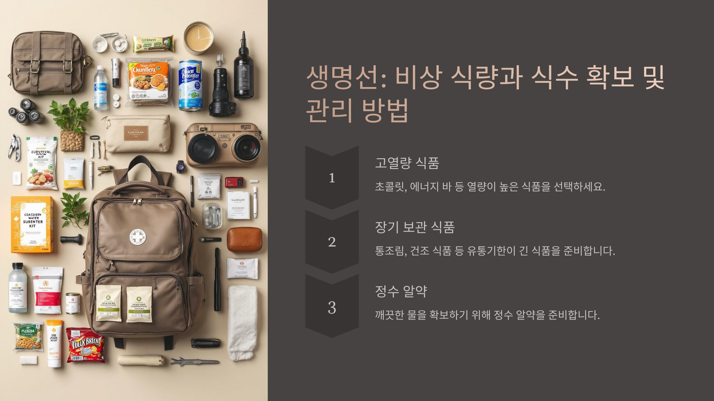 이제 비상식량과 식수 확보법을 살펴볼까요? 🥫💧