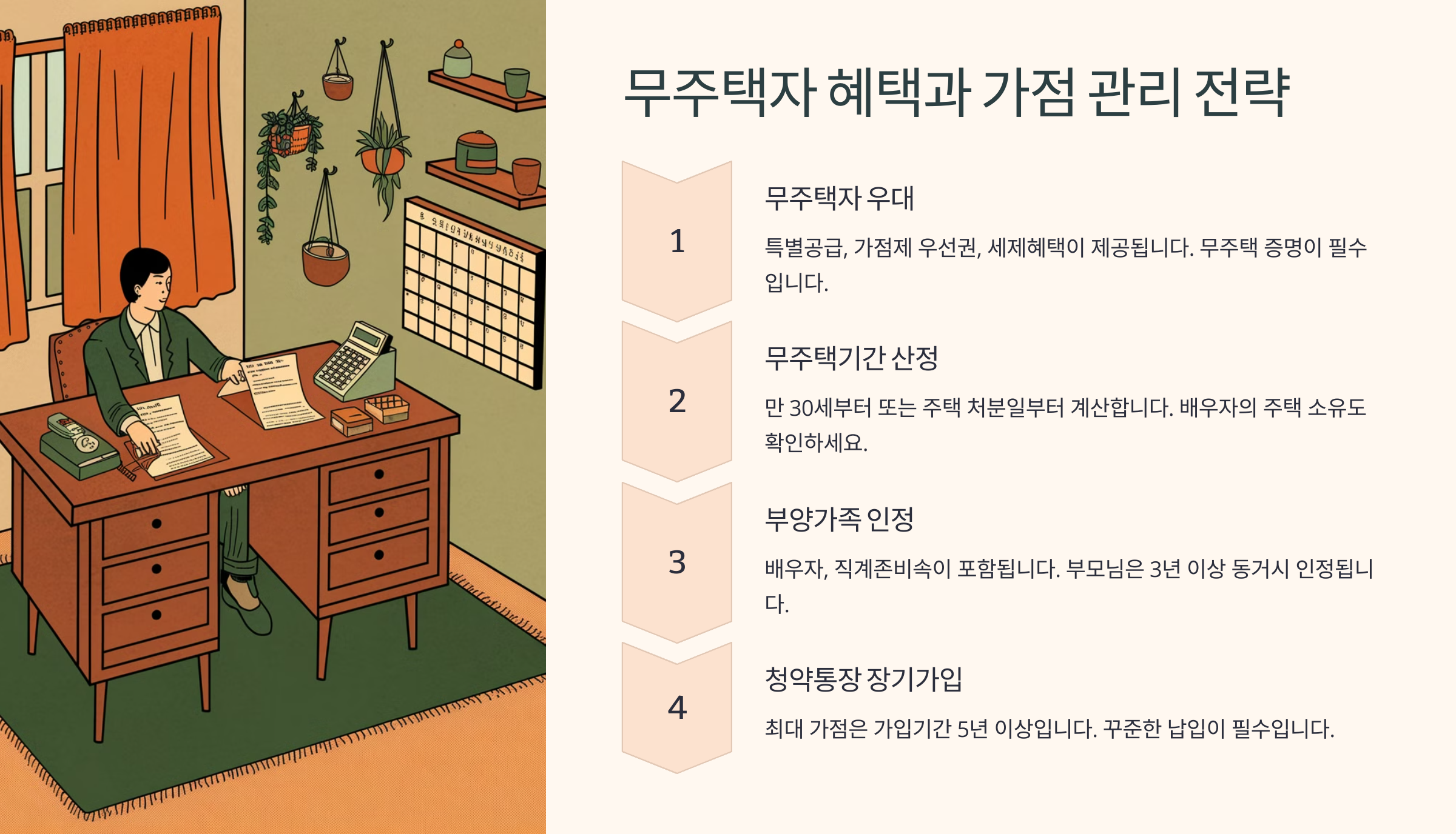 무주택자는 주택청약에서 가장 중요한 요소예요. 가점제에서 무주택 기간이 길수록 높은 점수를 받을 수 있기 때문에, 내 집 마련을 계획하고 있다면 무주택 상태를 유지하는 것이 좋아요. ⏳