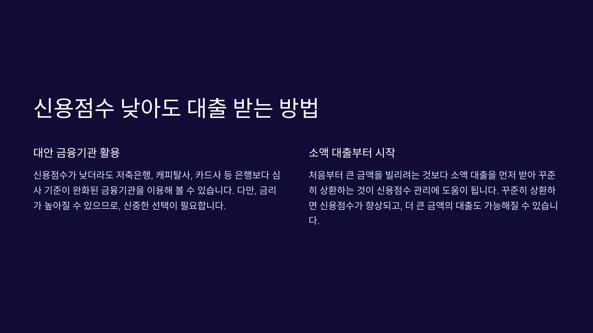 그렇다면 신용점수가 낮을 때 대출받아도 점수를 보호하는 방법은 없을까요? 👇