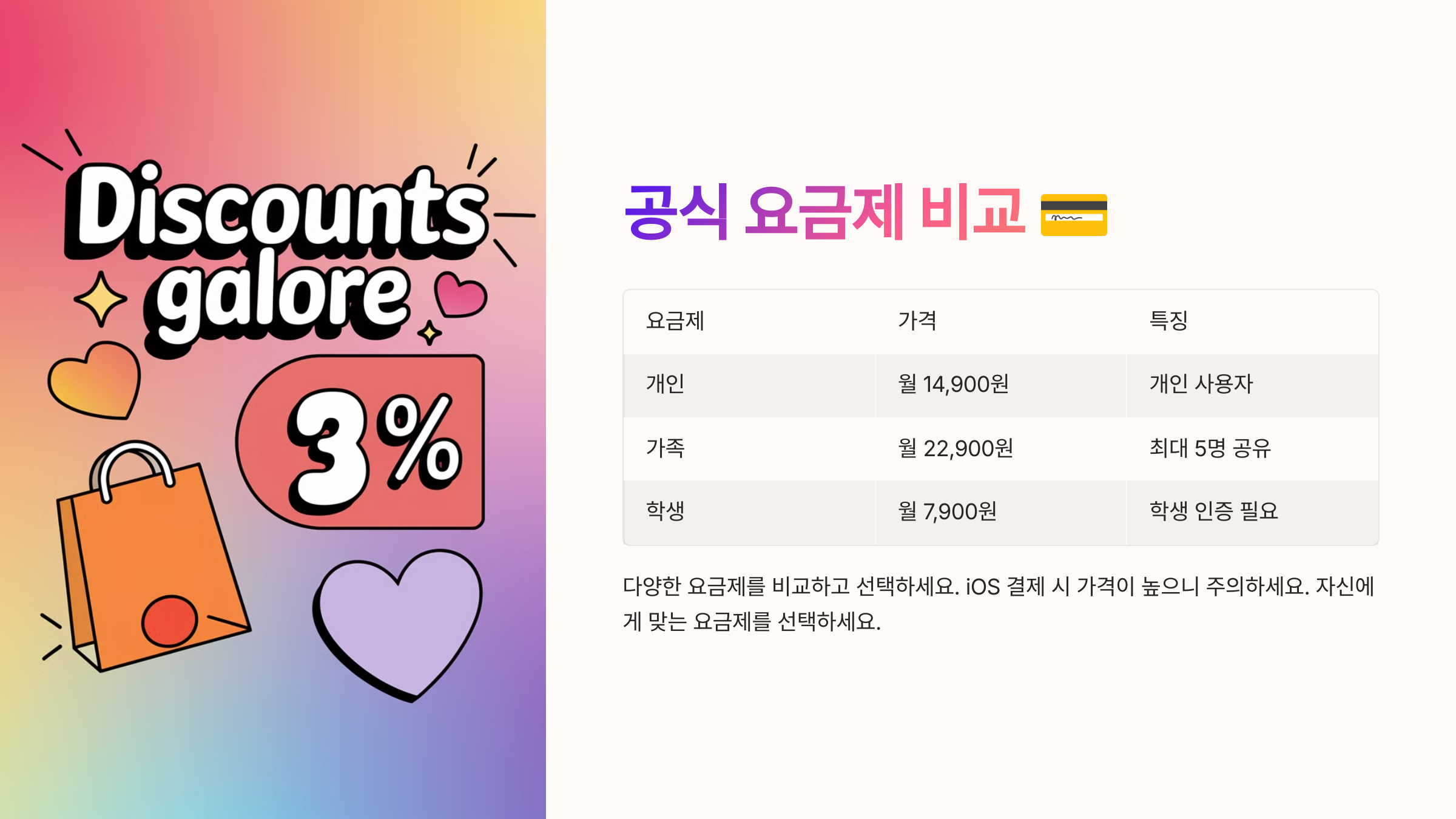| 학생 플랜 | 7,900원 | 학생 인증 필요, 개인 전용 | 1명 |