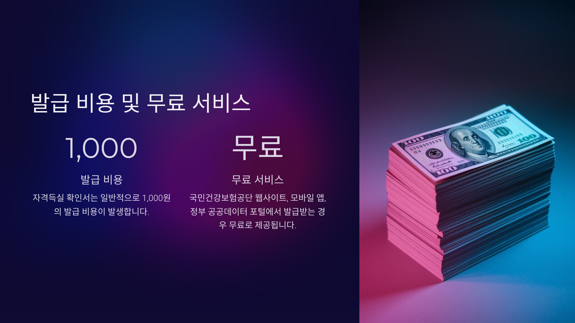 발급 비용 및 무료 서비스