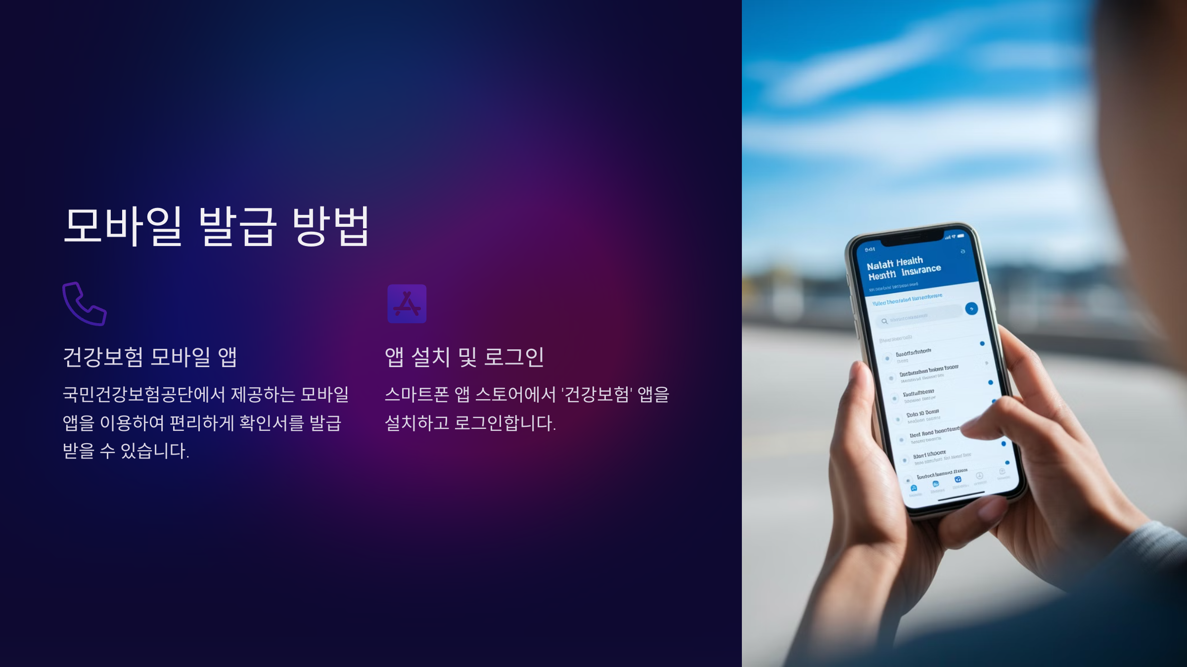 국민건강보험공단 모바일 앱(NHIS 앱)을 설치하여 스마트폰으로 발급받을 수 있습니다.