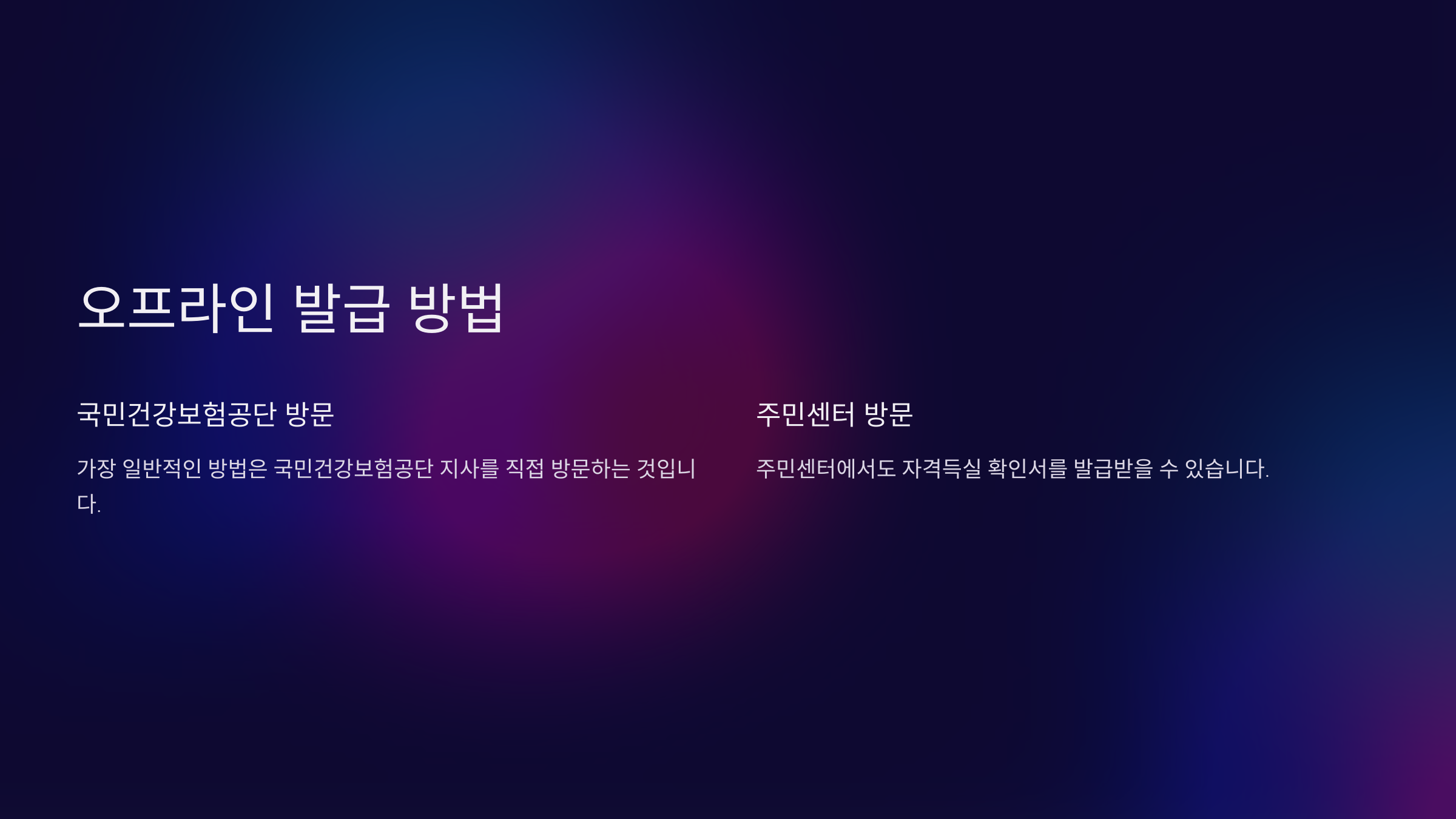 오프라인 발급은 즉시 처리되므로 긴급한 경우 유용합니다.