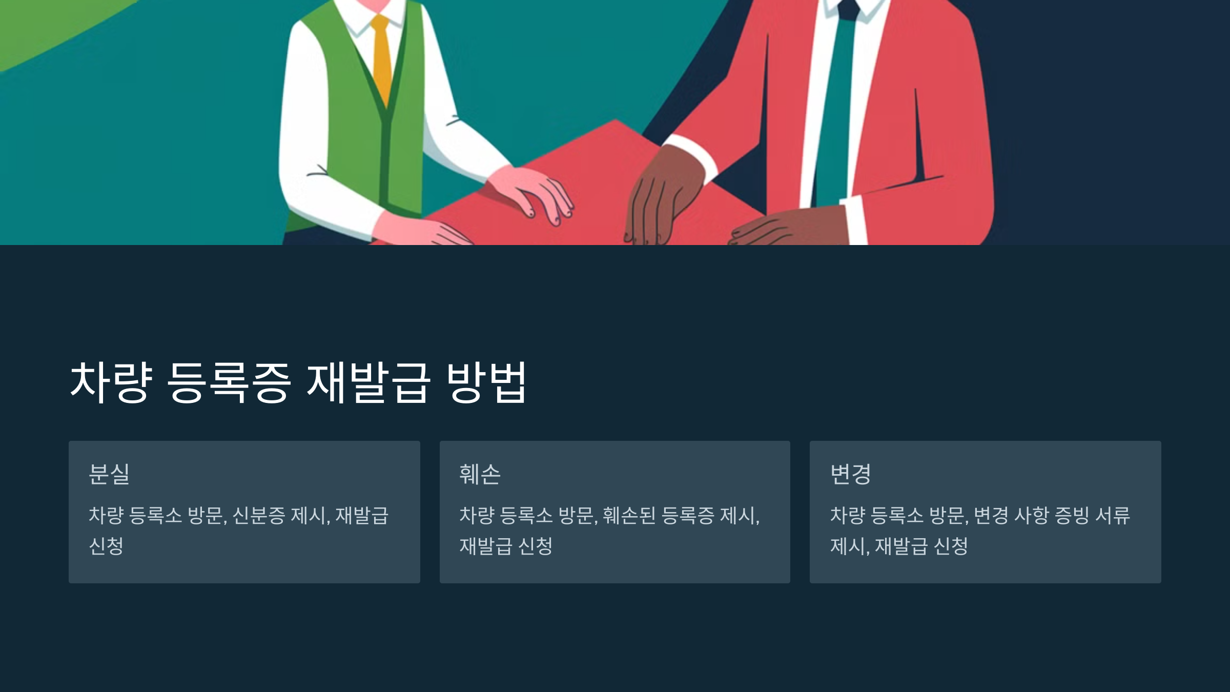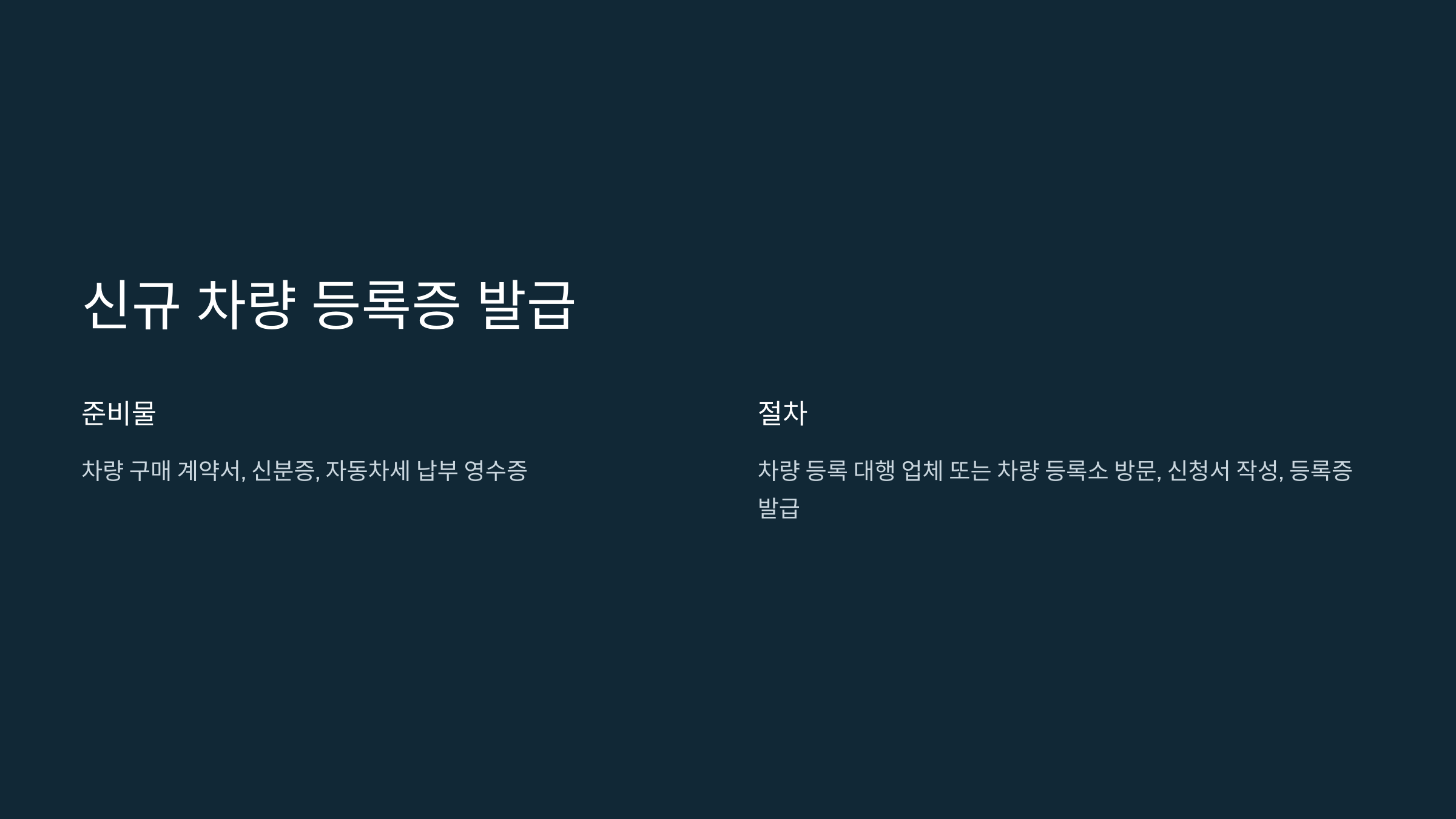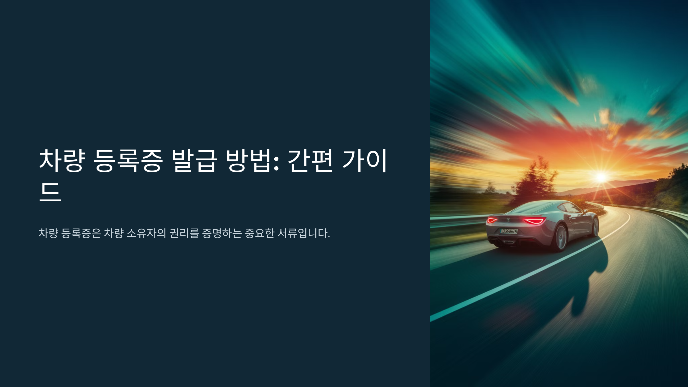 차량 등록증은 차량 소유자와 차량의 주요 정보를 증명하는 공식 문서입니다. 본 가이드는 신규 발급, 재발급, 온라인 발급 등 차량 등록증과 관련된 모든 절차를 쉽고 간편하게 따라 할 수 있도록 정리했습니다.