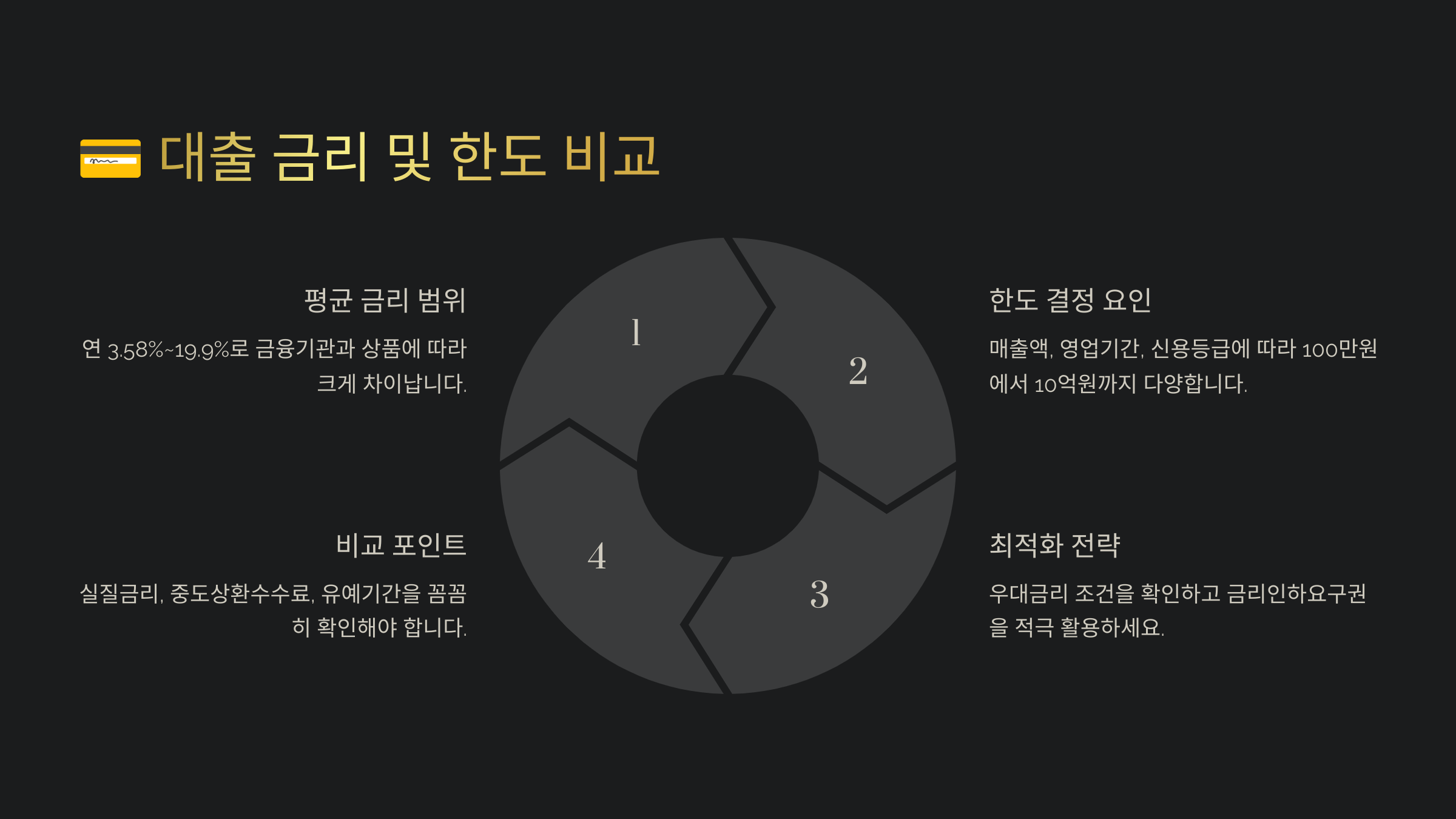 개인사업자 대출을 고려할 때 가장 중요한 요소 중 하나가 바로 금리와 대출 한도예요. 금리가 낮을수록 이자 부담이 줄고, 한도가 높을수록 더 많은 사업 자금을 확보할 수 있어요.