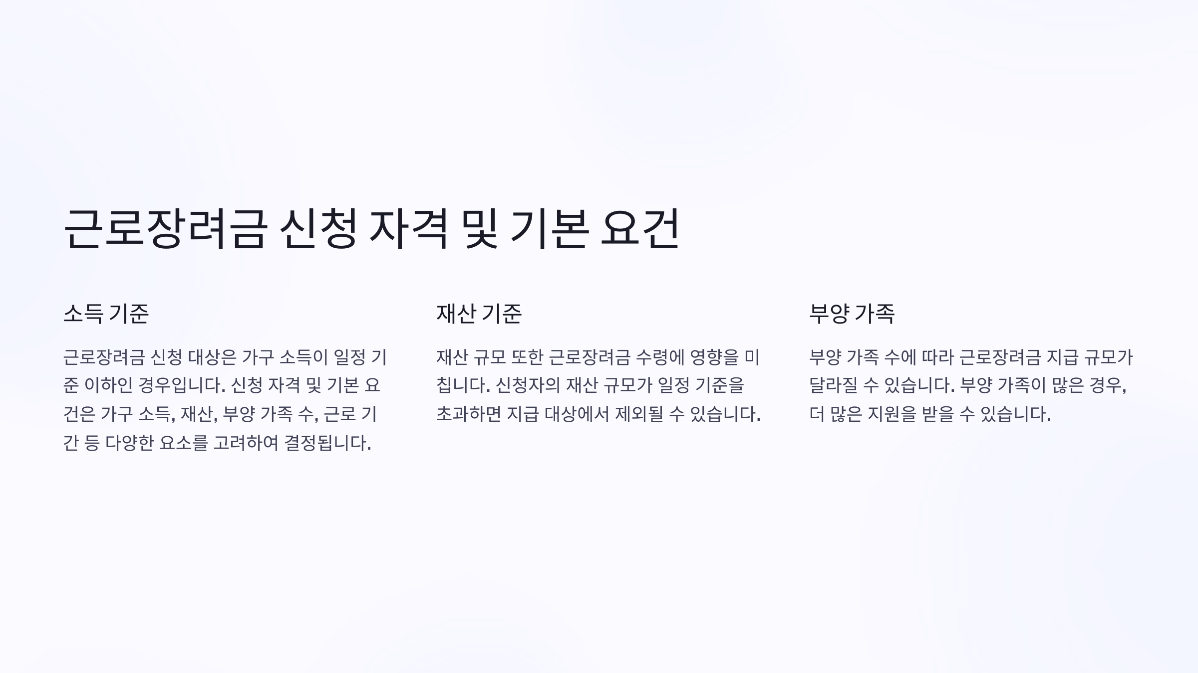 - 부동산이나 자동차, 금융 자산이 기준을 초과하면 지급 대상에서 제외될 수 있어요.