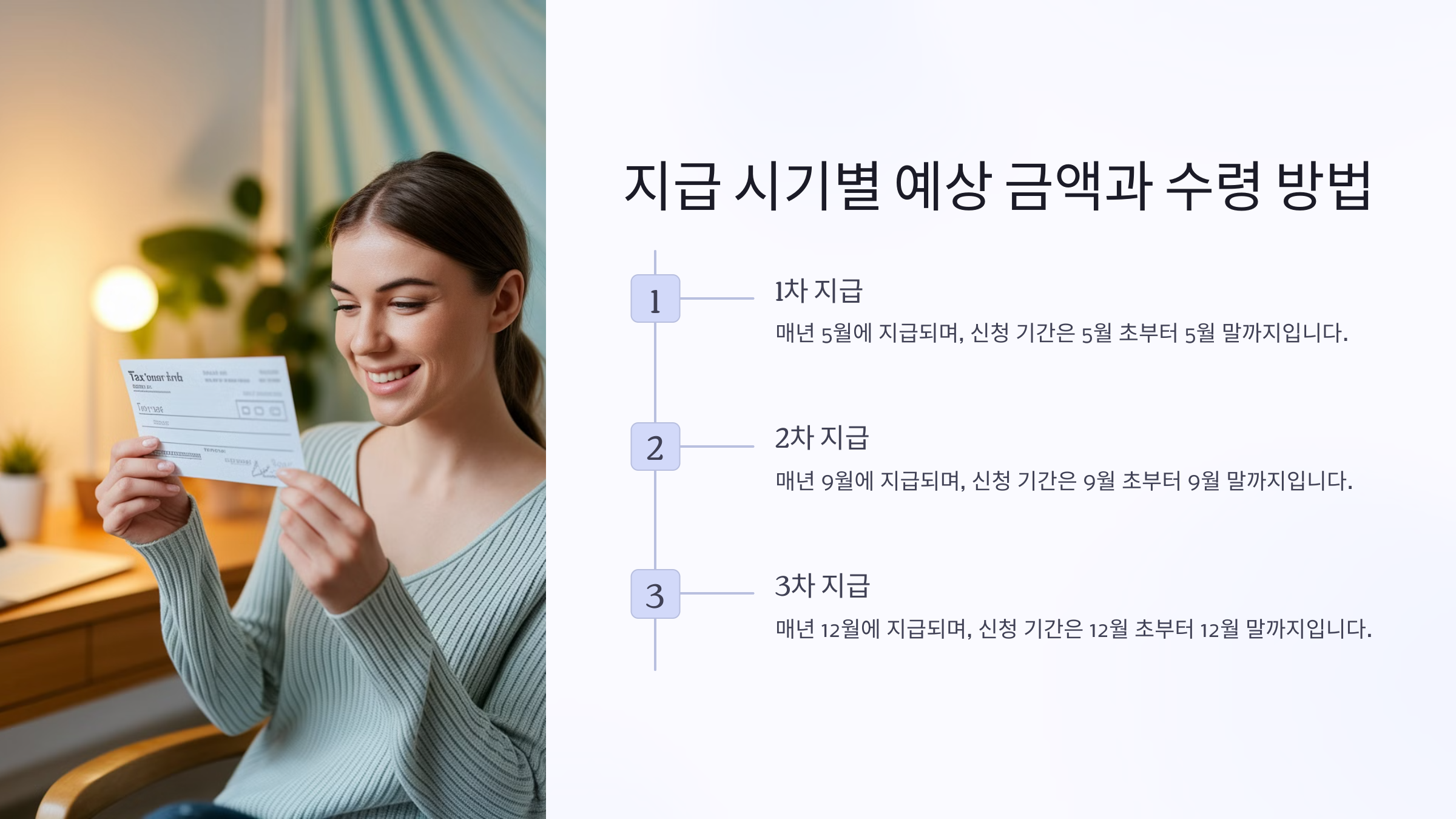 정기 신청자는 9월 말에 한 번에 지급받고, 반기 신청자는 6월과 12월 두 번 나누어 지급받을 수 있어요. 본인의 상황에 맞춰 신청하면 돼요! 💡