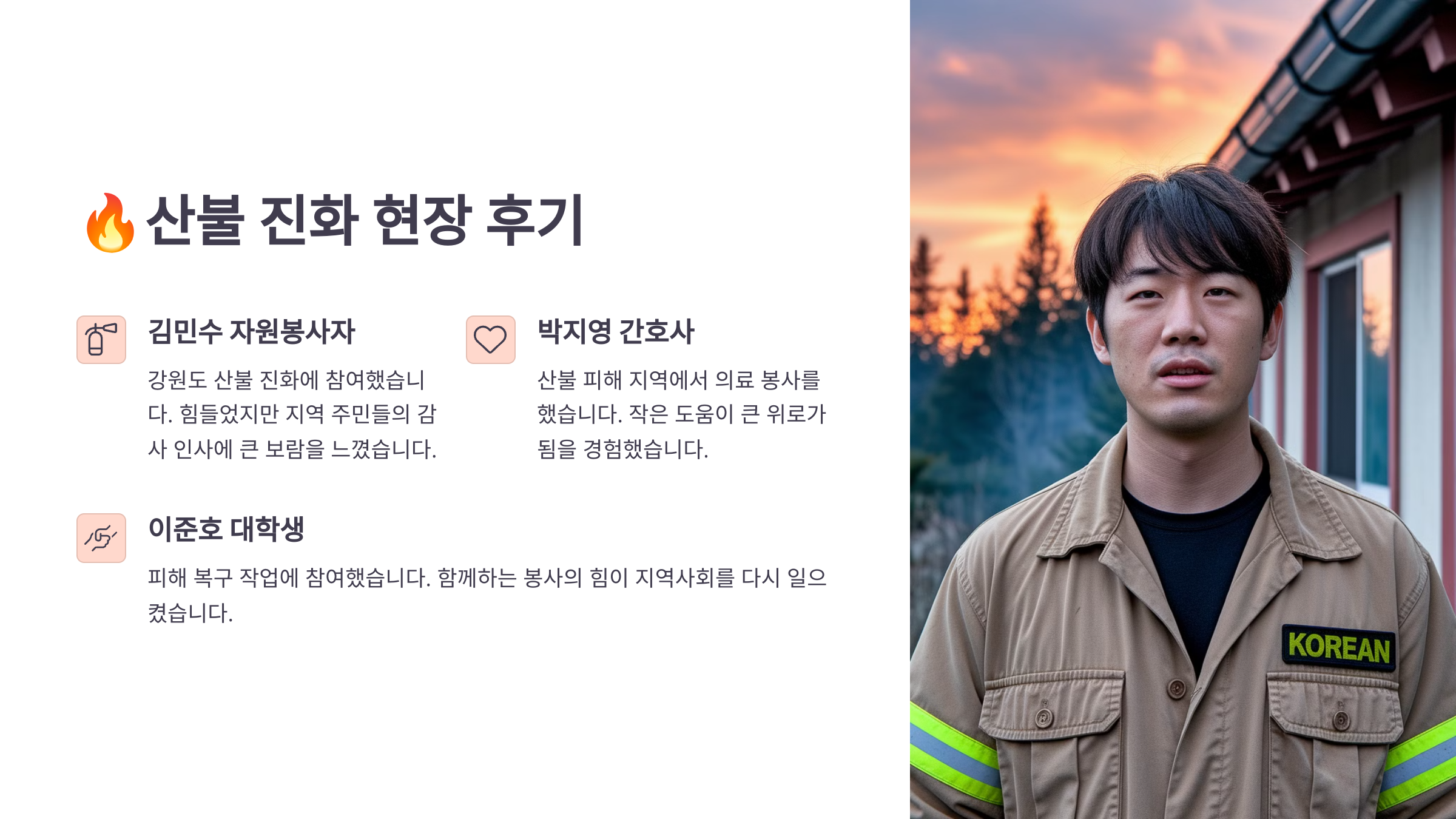 💬 산불 진화 현장 감동 후기 요약