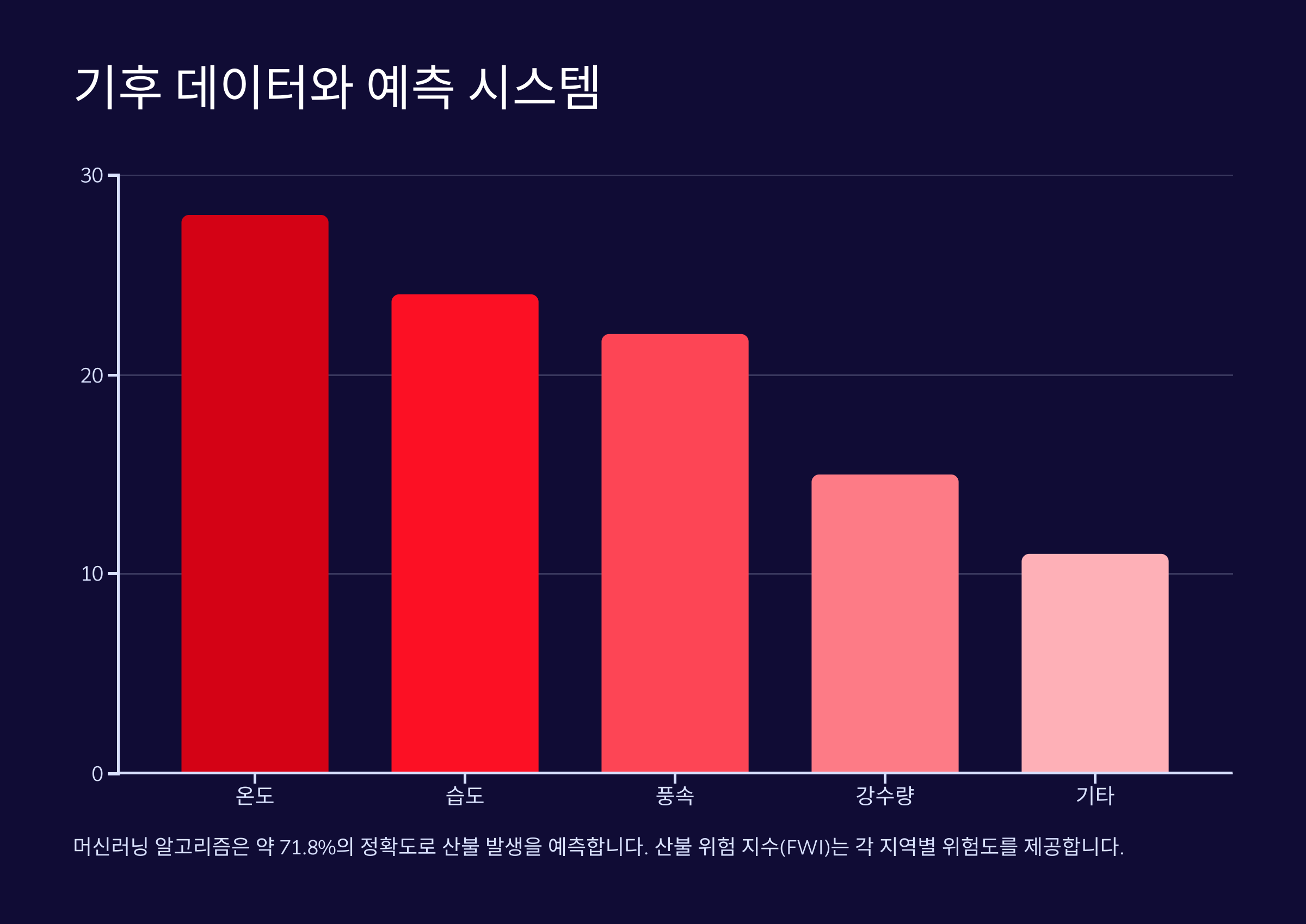 그래서 기후 데이터를 분석해 산불 위험을 미리 예측하는 시스템이 중요해졌어요. 예를 들어, 기상청은 최근 10년간의 기온, 습도, 풍속 데이터를 통해 산불 발생 확률을 수치화해 제공하고 있어요.