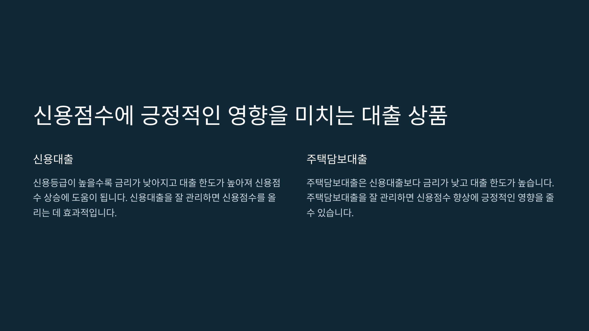 다음 섹션에서 신용점수를 올리는 대출 상품을 알아볼게요.