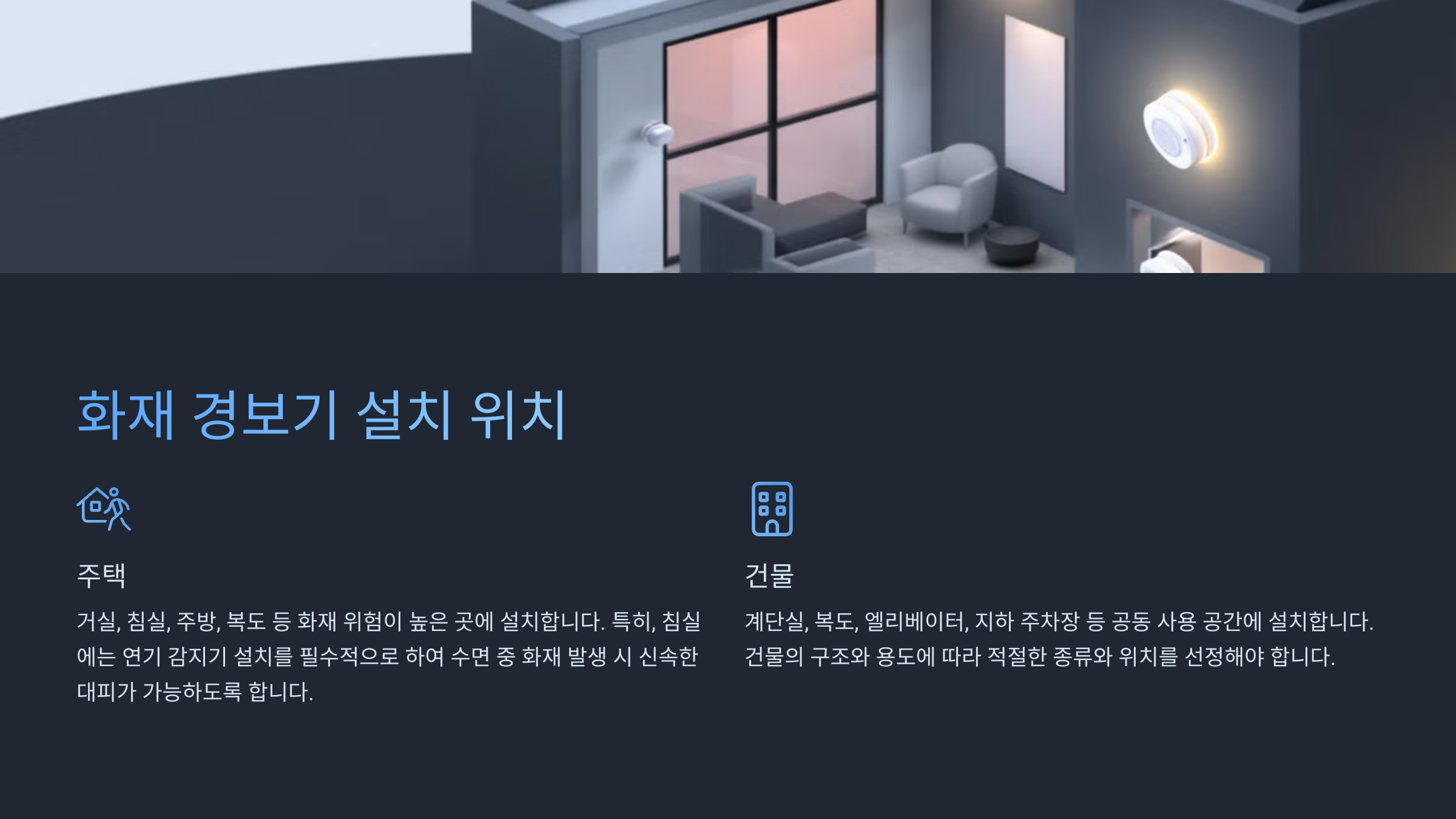 - ✔ 주방: 열 감지형(연기가 많아 오작동 방지 가능)