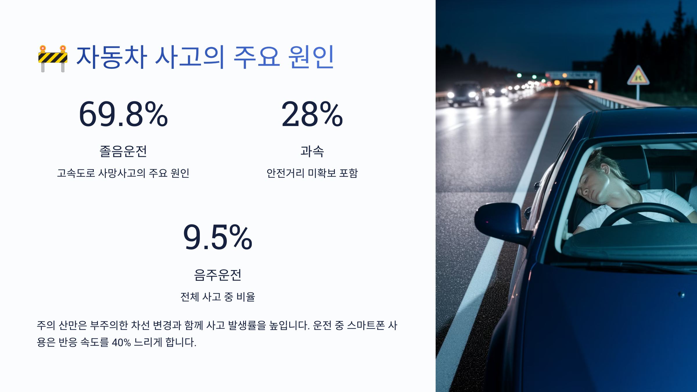 과속 | 24% | 제동 거리 증가, 야간 사고 다발 |
