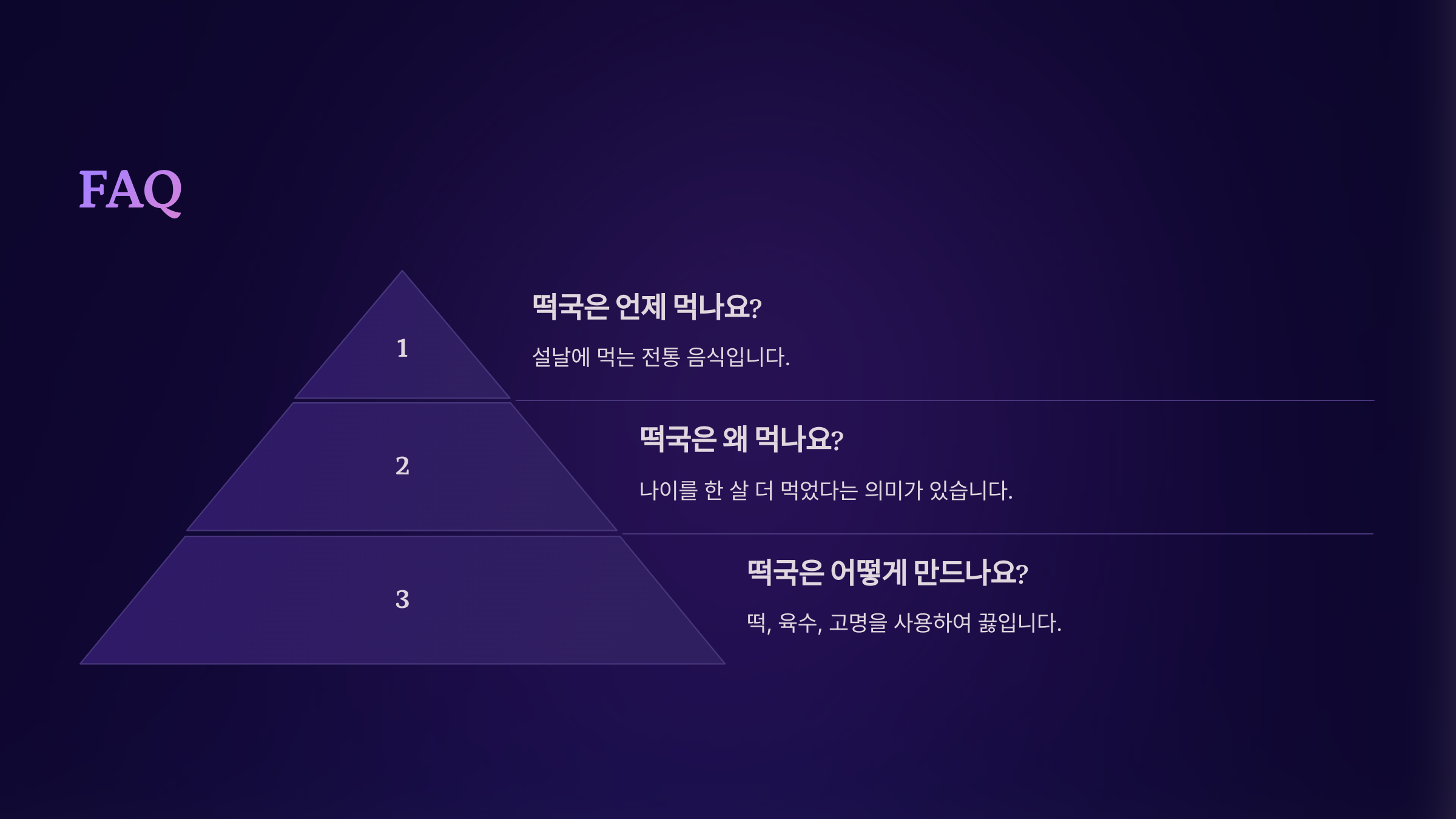 A3. 네! 멸치, 다시마, 무를 사용한 채소 육수로도 충분히 맛있는 떡국을 만들 수 있어요.