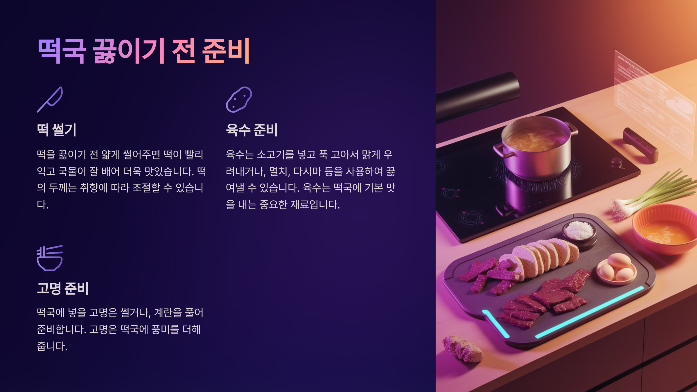 이제 모든 준비가 완료됐으니, 본격적으로 떡국을 끓여볼 차례예요!
