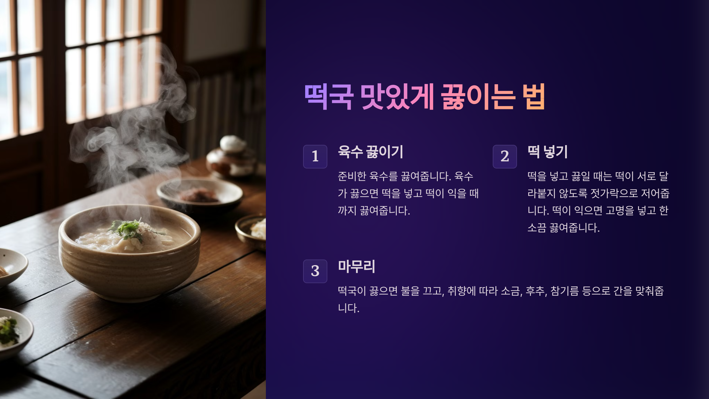 모든 준비가 끝났다면 이제 떡국을 끓이는 방법을 단계별로 알려드릴게요. 떡국은 생각보다 간단하지만, 국물 맛이 관건이에요!