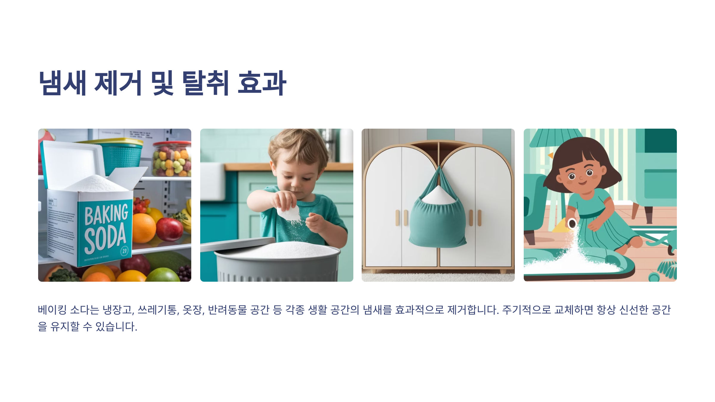 👉 냉장고 탈취: 작은 그릇에 베이킹 소다를 담아 냉장고 안에 두면 불쾌한 냄새가 제거돼요.