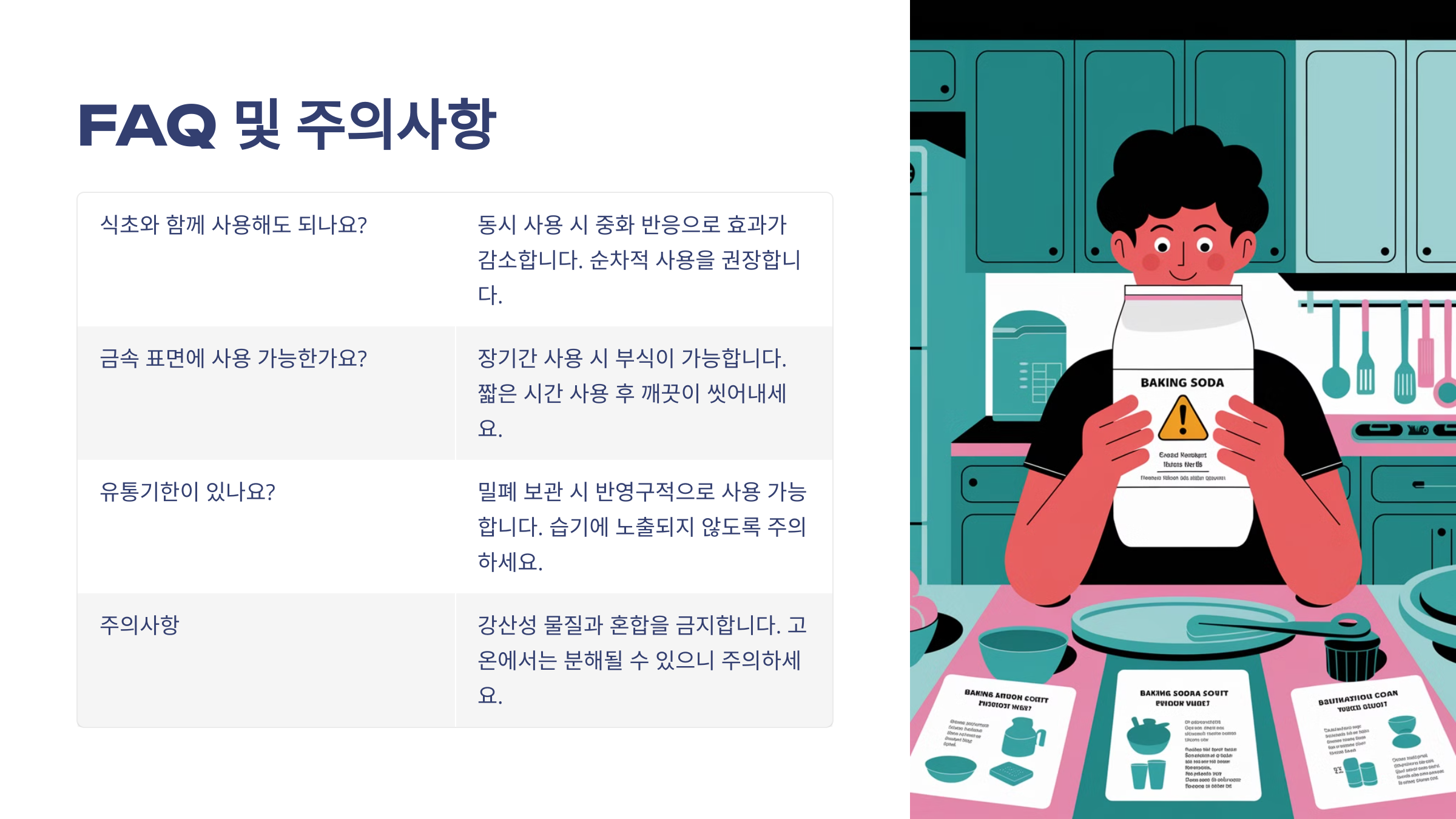 이제 베이킹 소다에 대해 자주 묻는 질문을 정리해 볼게요! 🤔
