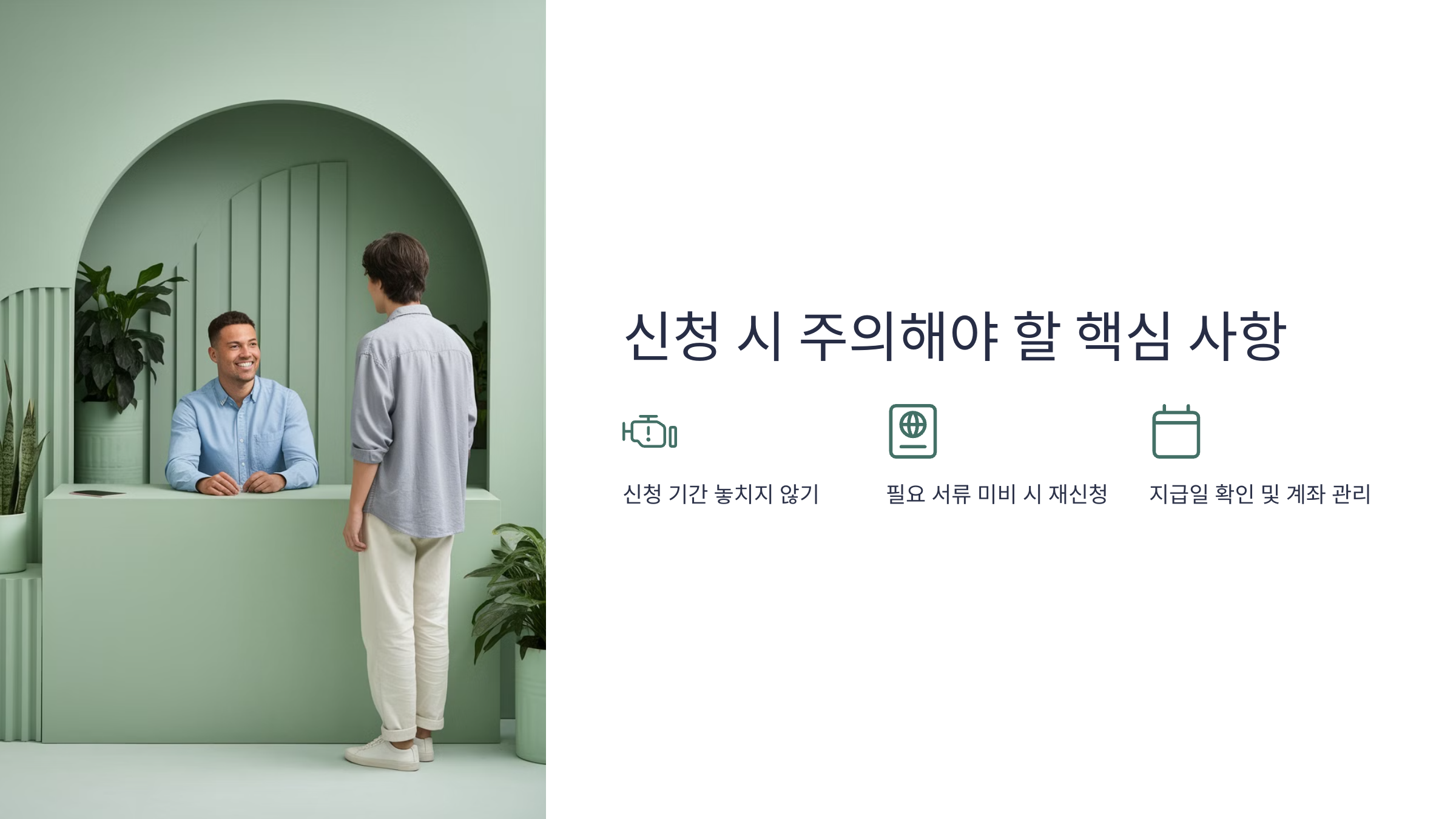 - 소득·재산 변동: 신청 후에도 소득·재산 상태가 변하면 지급액이 조정될 수 있어요.