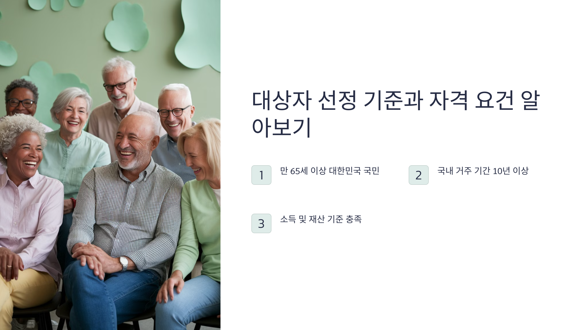 2025년 기준 기초연금 신청 자격은 크게 연령, 소득·재산 기준으로 나뉘어요. 다음 조건을 충족해야 신청할 수 있어요.
